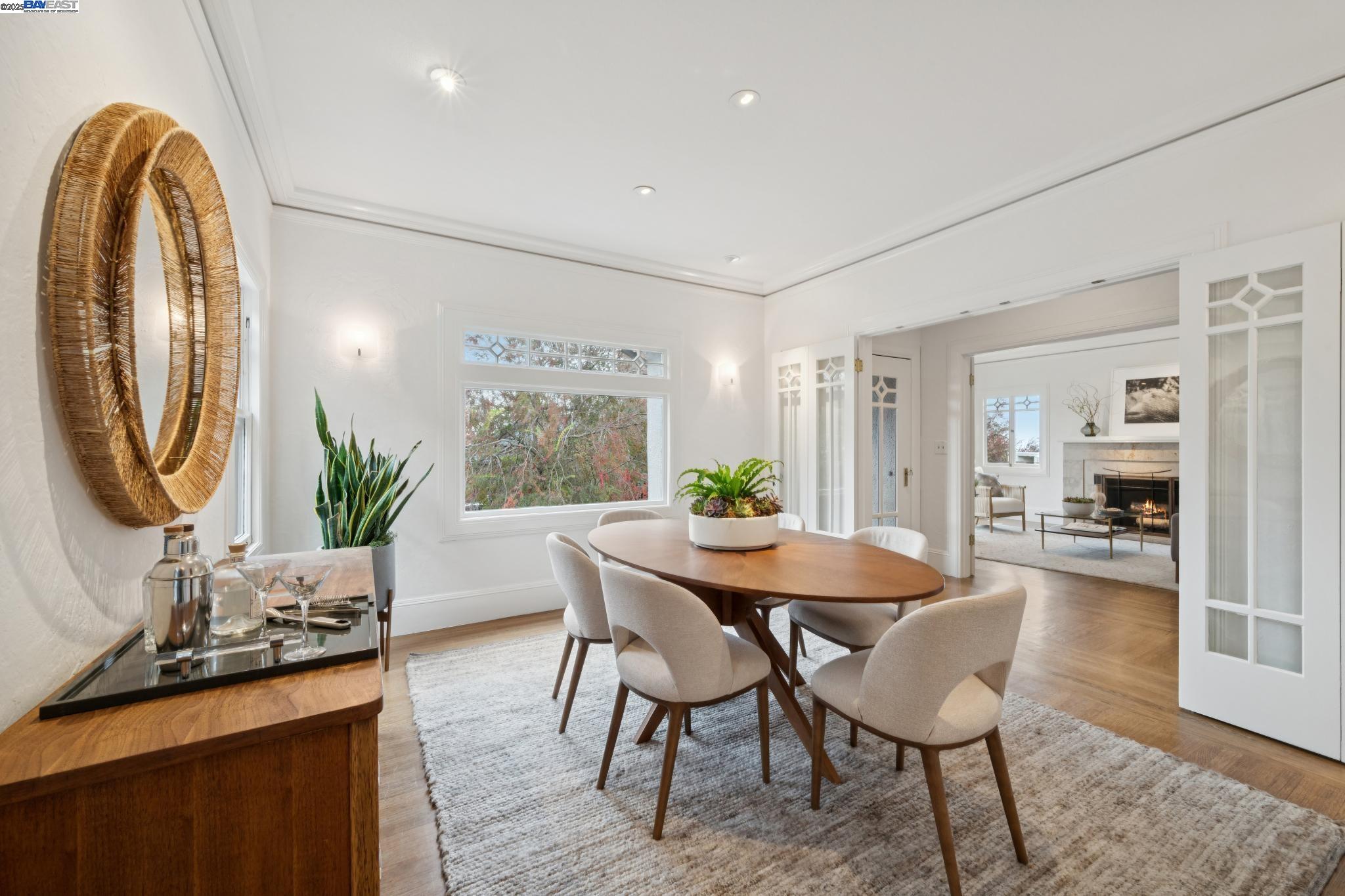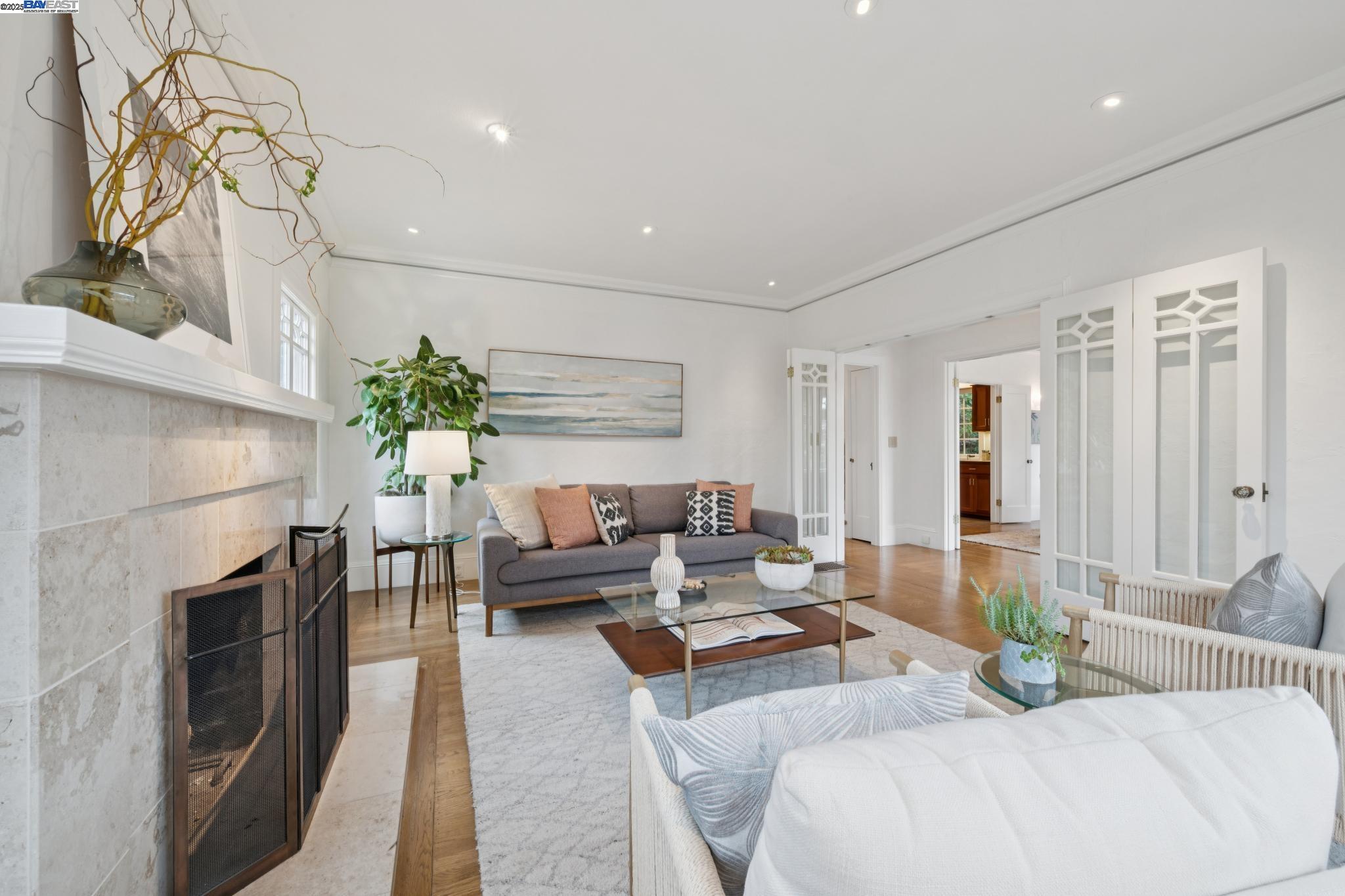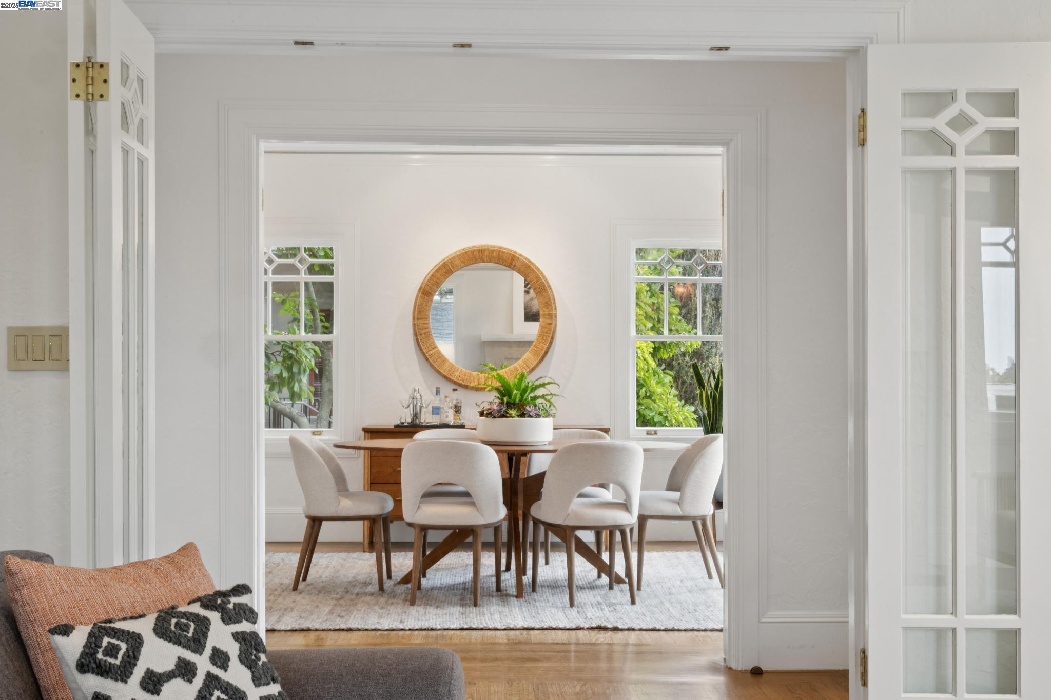 Enjoy the best of North Berkeley living in this 3+BD/2BA Craftsman treasure with Bay views, set in one of the city's most desirable locations near both lively Shattuck and Solano Avenues. Through a gorgeous beveled glass door, the 2157 SQFT welcomes you with its gracious foyer and vintage architectural details including: French doors, crown moulding, mullioned windows, built-ins, and hardwood floors. Relax with friends and family in the living room with its cozy fireplace and picture window of the treelined street. The sunny dining room connects to the stylish cook's kitchen featuring Miele ovens, Thermador stovetop, Bosch dishwasher, SubZero fridge, and a glass door to the backyard. Dine al fresco on the patio, garden in the raised beds, or drink your morning coffee on the deck. The refurbished 1-car garage has side French doors, making it a flexible space for work or play. Back inside, the lower level is complete with a full bath and two bright bedrooms. Upstairs, a family room/office awaits, while the primary suite enjoys Golden Gate and Mount Tam views, a large walk-in closet, and an ensuite bath. Find laundry and storage in the basement. Beloved Live Oak Park is two blocks away, Cal and BART are down the road, and Tilden Park awaits up the hill.