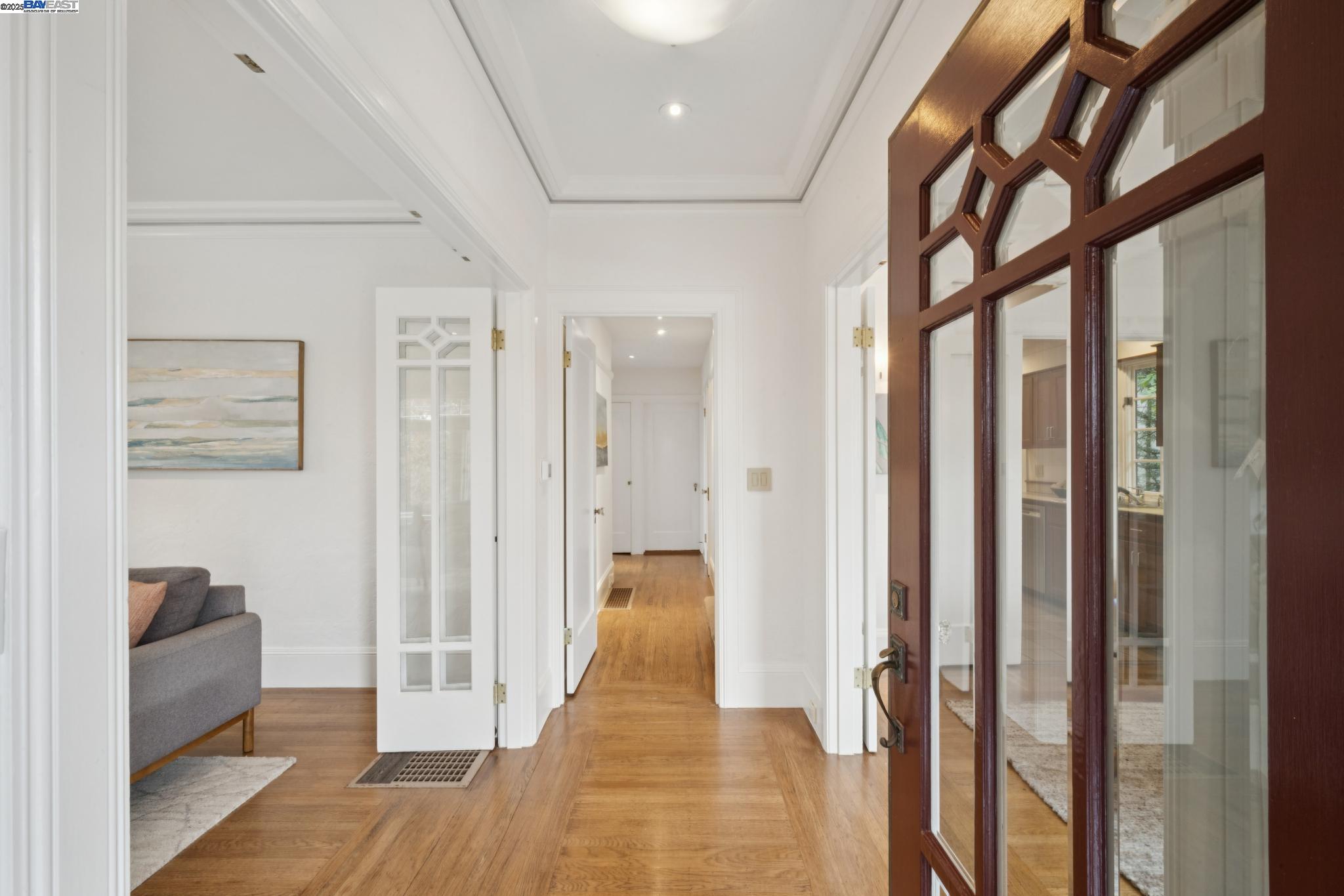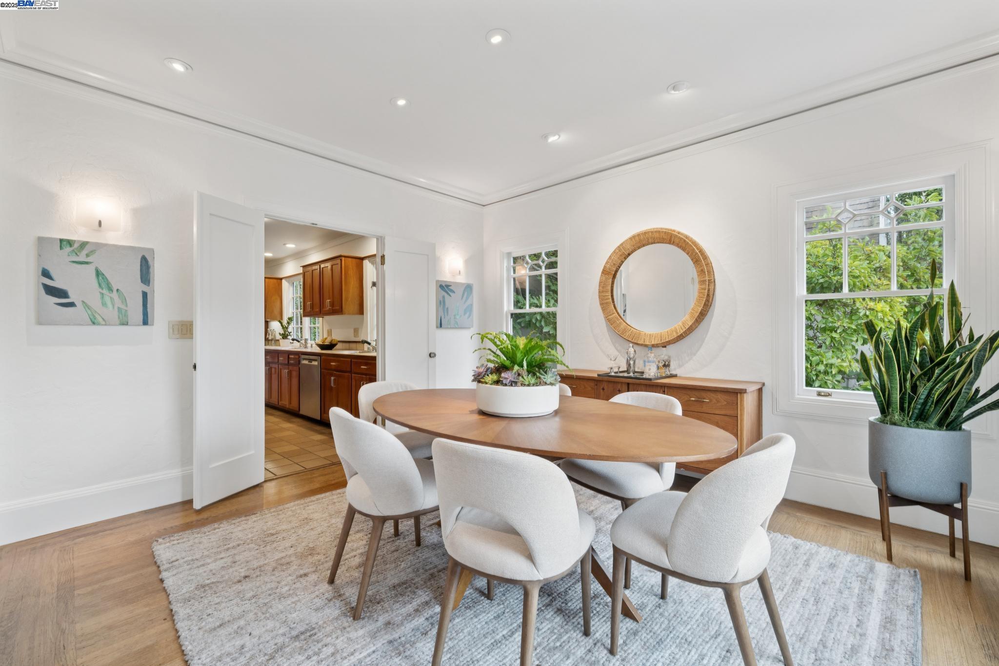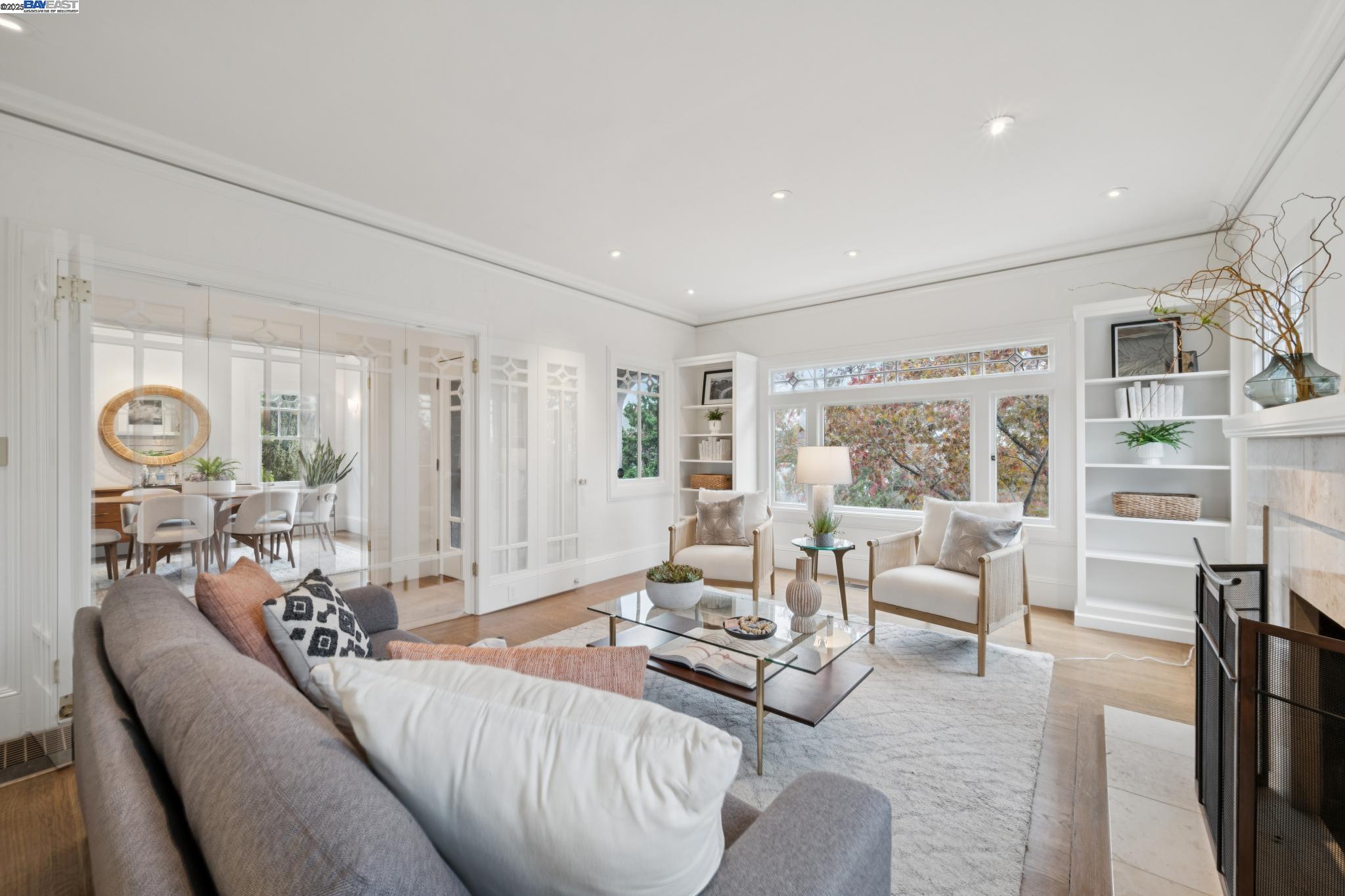 Enjoy the best of North Berkeley living in this 3+BD/2BA Craftsman treasure with Bay views, set in one of the city's most desirable locations near both lively Shattuck and Solano Avenues. Through a gorgeous beveled glass door, the 2157 SQFT welcomes you with its gracious foyer and vintage architectural details including: French doors, crown moulding, mullioned windows, built-ins, and hardwood floors. Relax with friends and family in the living room with its cozy fireplace and picture window of the treelined street. The sunny dining room connects to the stylish cook's kitchen featuring Miele ovens, Thermador stovetop, Bosch dishwasher, SubZero fridge, and a glass door to the backyard. Dine al fresco on the patio, garden in the raised beds, or drink your morning coffee on the deck. The refurbished 1-car garage has side French doors, making it a flexible space for work or play. Back inside, the lower level is complete with a full bath and two bright bedrooms. Upstairs, a family room/office awaits, while the primary suite enjoys Golden Gate and Mount Tam views, a large walk-in closet, and an ensuite bath. Find laundry and storage in the basement. Beloved Live Oak Park is two blocks away, Cal and BART are down the road, and Tilden Park awaits up the hill.