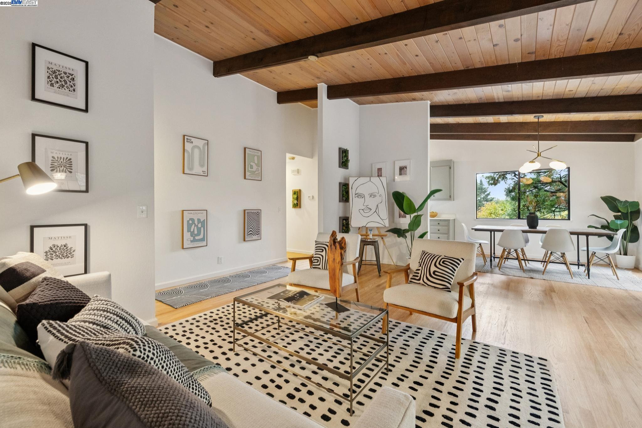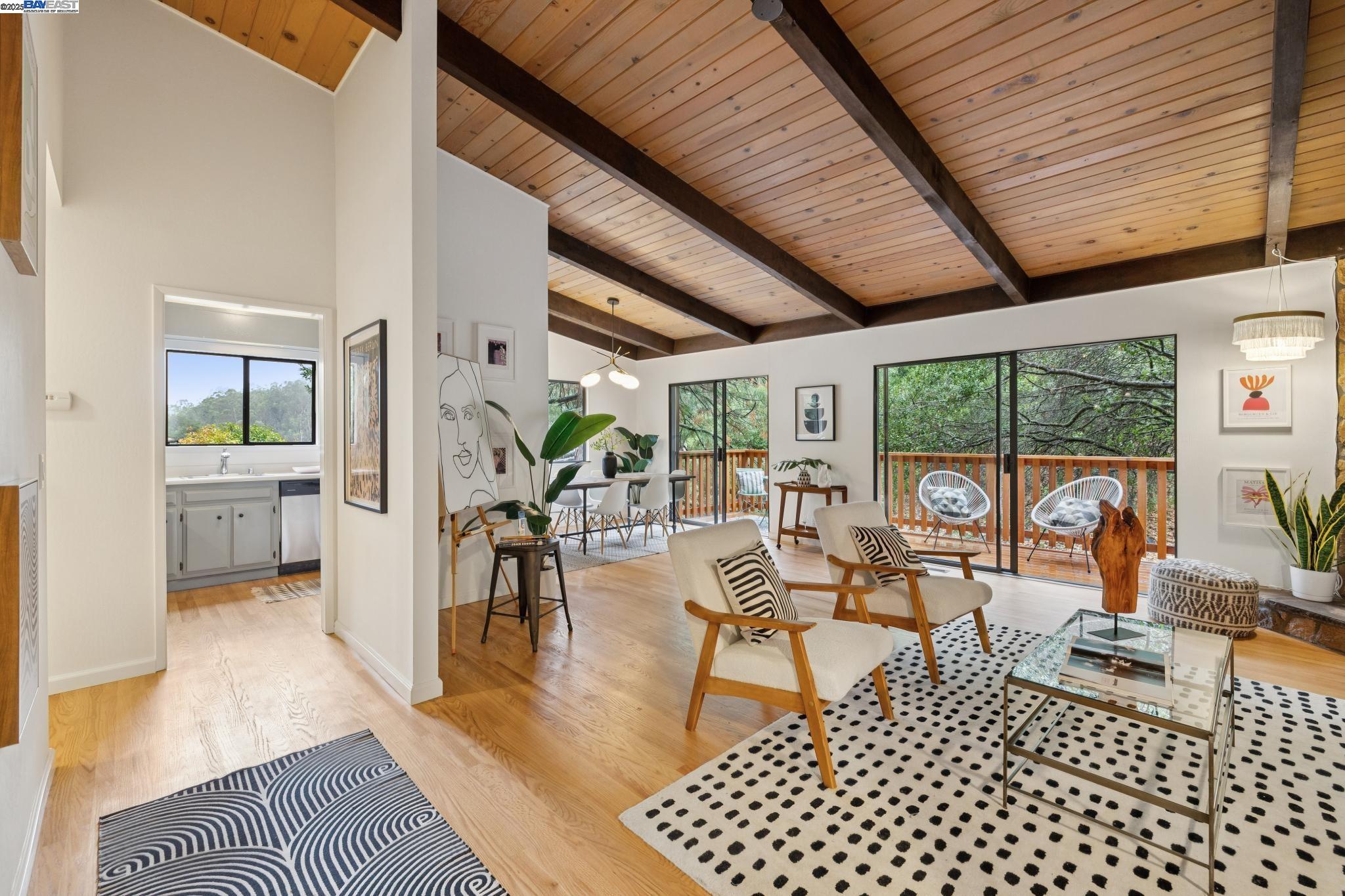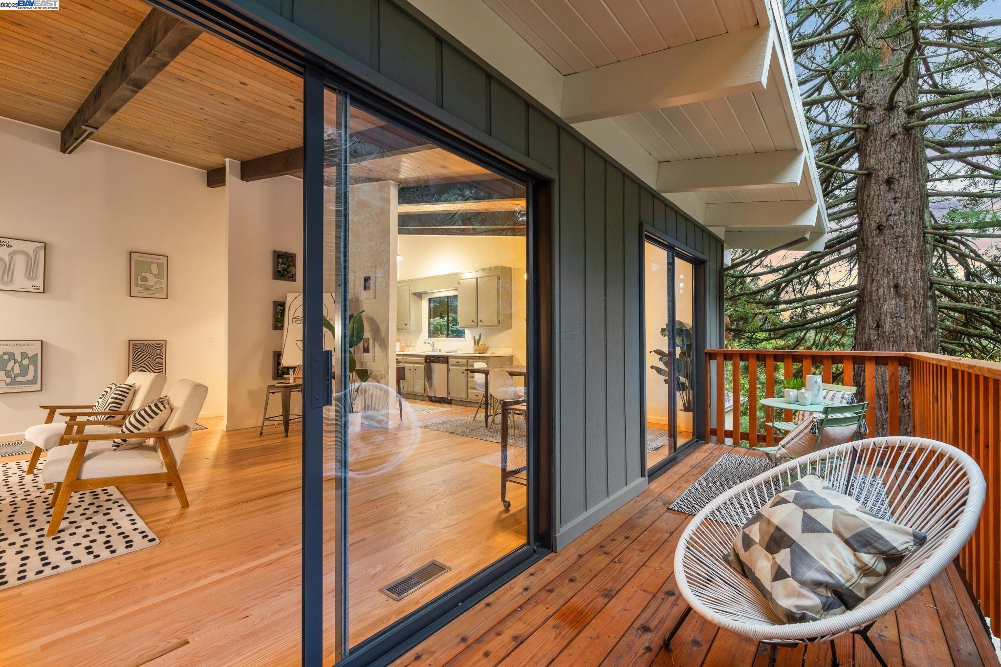 Surrounded by redwoods and beautiful oaks, this upgraded 3BD/2.5BA Montclair home is now transparently priced! The 1709 SQFT home welcomes you with a spacious terrace where you can unwind or entertain encircled by majestic trees and a terraced garden. Step inside the home's open living area that compliments the setting's natural beauty with a soaring beamed ceiling, a statement stone fireplace, and two sliding glass doors onto a new deck that spans the living and dining area. The adjacent stylish kitchen, the open floor plan, and wide deck offer seamless flow and indoor/outdoor living. New hardwood floors continue down the...